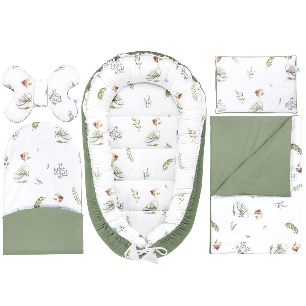 Sada 5 prvků byla vytvořena s ohledem na pohodlí náročných rodičů a jejich nejmenších dětí. Je to bezpečné a útulné místo, které poskytuje ideální prostředí pro spánek a hraní. Ochrání každé dítě od prvních okamžiků života, nabízející mu útulný prostor podobný tomu v matčině břiše. Sada nejen pomáhá usnout, ale také zajišťuje delší a klidnější spánek. Je to ideální řešení plné funkcí, které usnadňují péči o novorozence.