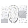 Sada 5 prvků byla vytvořena s ohledem na pohodlí náročných rodičů a jejich nejmenších dětí. Je to bezpečné a útulné místo, které poskytuje ideální prostředí pro spánek a hraní. Ochrání každé dítě od prvních okamžiků života, nabízející mu útulný prostor podobný tomu v matčině břiše. Sada nejen pomáhá usnout, ale také zajišťuje delší a klidnější spánek. Je to ideální řešení plné funkcí, které usnadňují péči o novorozence.