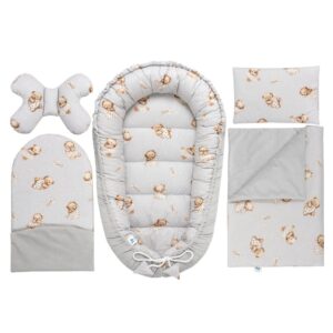 Sada 5 prvků byla vytvořena s ohledem na pohodlí náročných rodičů a jejich nejmenších dětí. Je to bezpečné a útulné místo, které poskytuje ideální prostředí pro spánek a hraní. Ochrání každé dítě od prvních okamžiků života, nabízející mu útulný prostor podobný tomu v matčině břiše. Sada nejen pomáhá usnout, ale také zajišťuje delší a klidnější spánek. Je to ideální řešení plné funkcí, které usnadňují péči o novorozence.