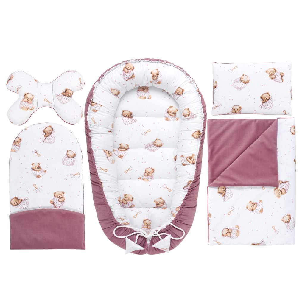 5-dílná sada – White Sleeping Tedy Bear velvet old rosa