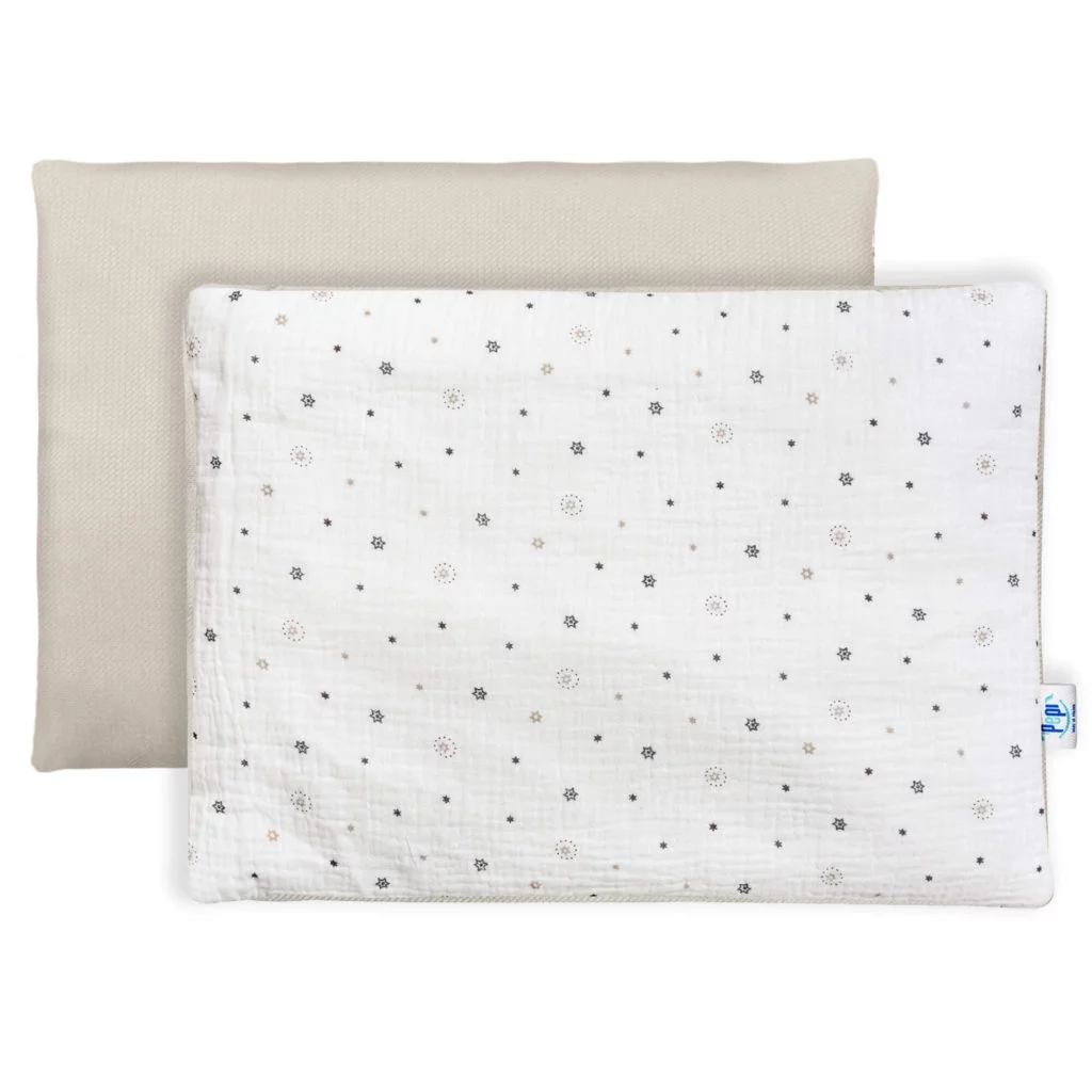 Polštář (25×35 cm): Ideální do postýlky nebo kočárku, vyrobený ze stejného kvalitního mušelínu, vyplněný antialergickým silikonovým vláknem, které zajišťuje klidný a pohodlný spánek.
