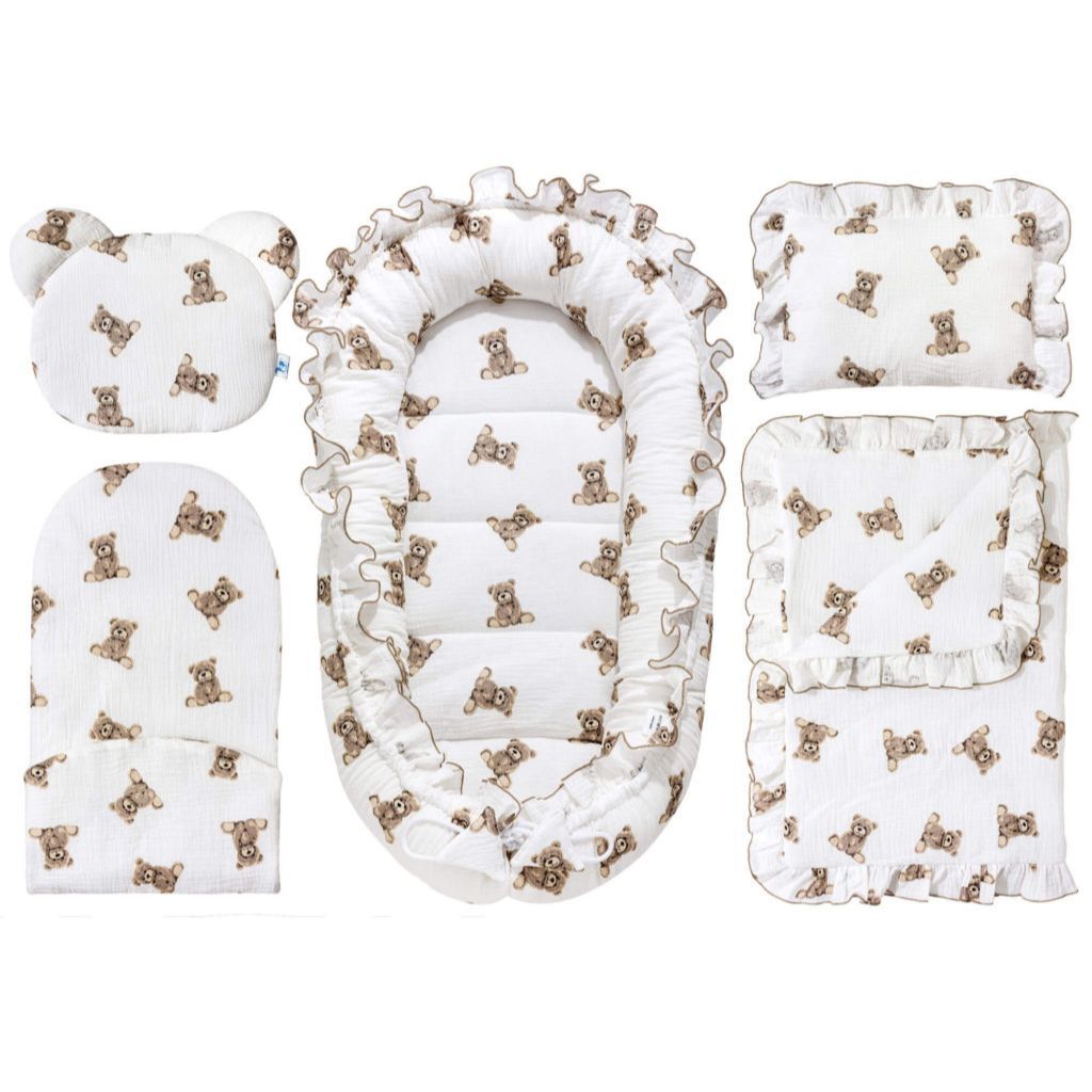 5-dílná sada z mušelínu s volánky – Sweet Teddy