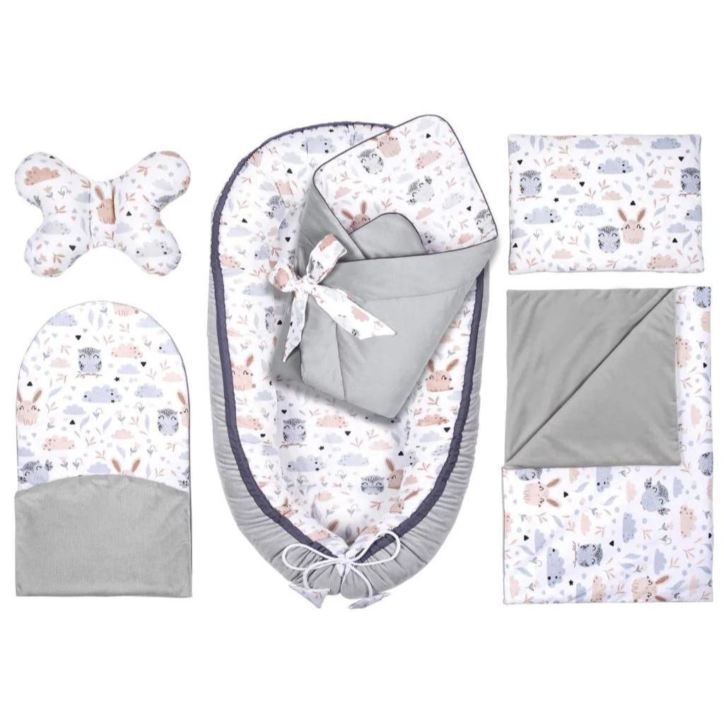 Sada 6 prvků byla vytvořena s ohledem na pohodlí náročných rodičů a jejich nejmenších dětí. Je to bezpečné a útulné místo, které poskytuje ideální prostředí pro spánek a hraní. Ochrání každé dítě od prvních okamžiků života, nabízející mu útulný prostor podobný tomu v matčině břiše. Sada nejen pomáhá usnout, ale také zajišťuje delší a klidnější spánek. Je to ideální řešení plné funkcí, které usnadňují péči o novorozence.