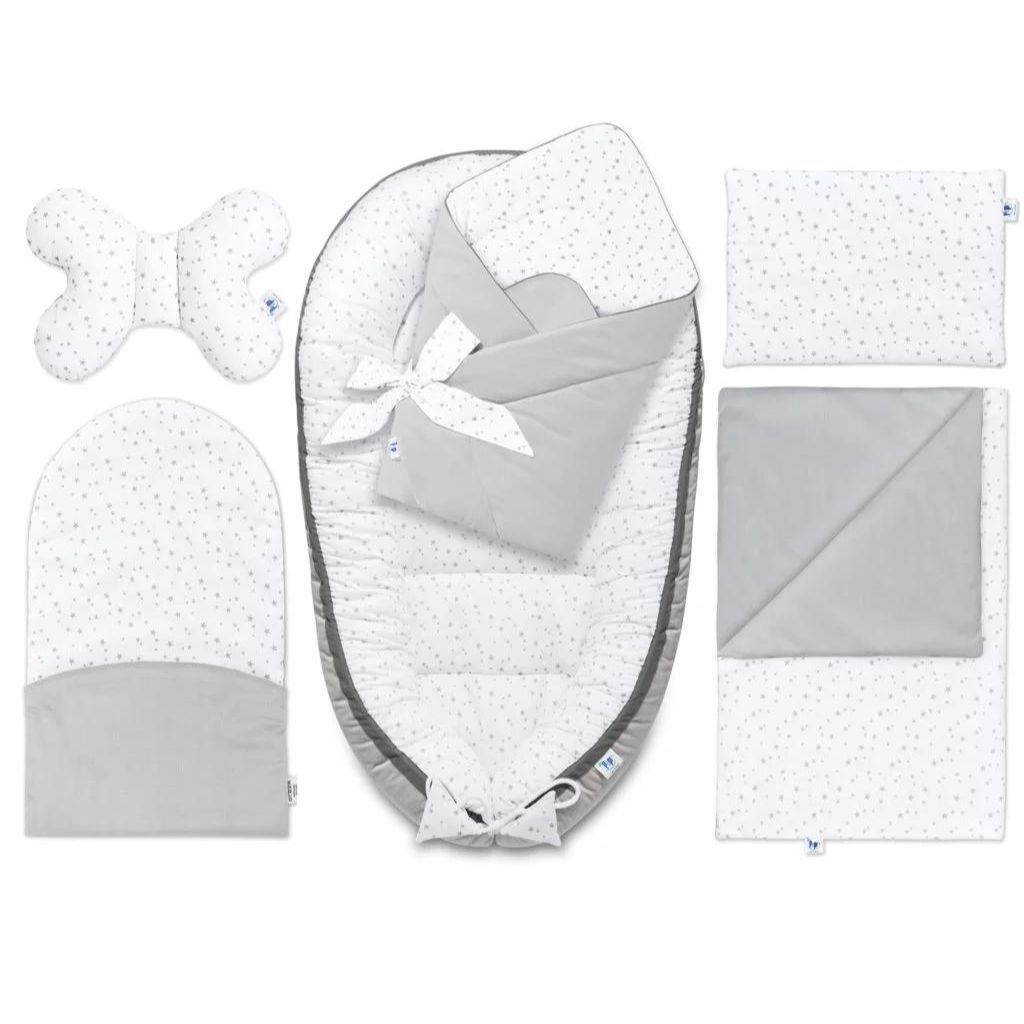 Sada 6 prvků byla vytvořena s ohledem na pohodlí náročných rodičů a jejich nejmenších dětí. Je to bezpečné a útulné místo, které poskytuje ideální prostředí pro spánek a hraní. Ochrání každé dítě od prvních okamžiků života, nabízející mu útulný prostor podobný tomu v matčině břiše. Sada nejen pomáhá usnout, ale také zajišťuje delší a klidnější spánek. Je to ideální řešení plné funkcí, které usnadňují péči o novorozence.