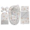 Sada 6 prvků byla vytvořena s ohledem na pohodlí náročných rodičů a jejich nejmenších dětí. Je to bezpečné a útulné místo, které poskytuje ideální prostředí pro spánek a hraní. Ochrání každé dítě od prvních okamžiků života, nabízející mu útulný prostor podobný tomu v matčině břiše. Sada nejen pomáhá usnout, ale také zajišťuje delší a klidnější spánek. Je to ideální řešení plné funkcí, které usnadňují péči o novorozence.