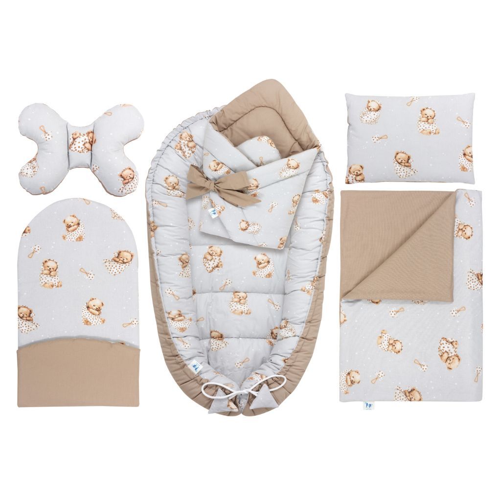 Sada 6 prvků byla vytvořena s ohledem na pohodlí náročných rodičů a jejich nejmenších dětí. Je to bezpečné a útulné místo, které poskytuje ideální prostředí pro spánek a hraní. Ochrání každé dítě od prvních okamžiků života, nabízející mu útulný prostor podobný tomu v matčině břiše. Sada nejen pomáhá usnout, ale také zajišťuje delší a klidnější spánek. Je to ideální řešení plné funkcí, které usnadňují péči o novorozence.
