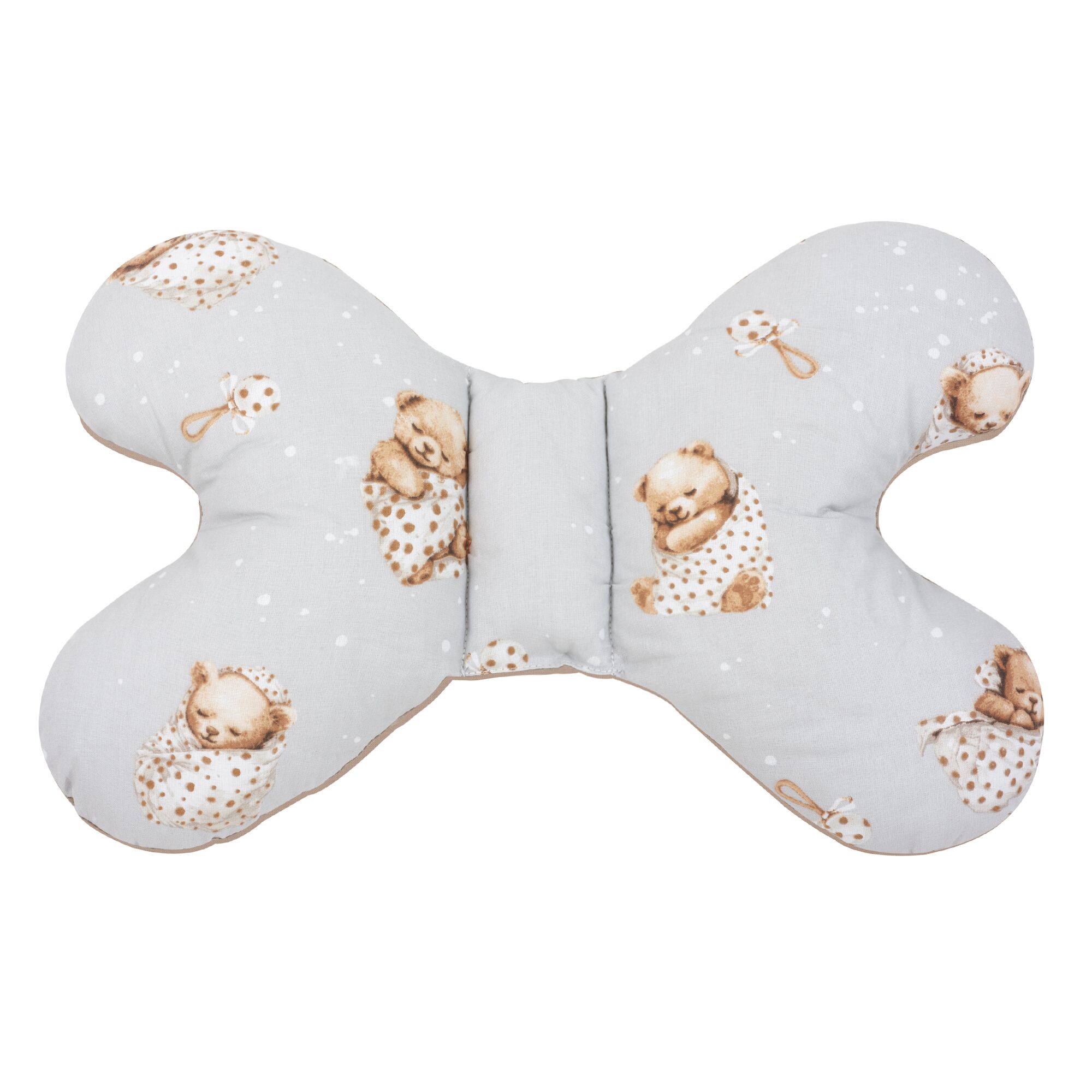 Protichvěcí oboustranný polštář Motýlek podpírá hlavičku dítěte během cestování, zabraňuje nekontrolovanému kývání ze strany na stranu a chrání citlivou krční páteř dítěte.