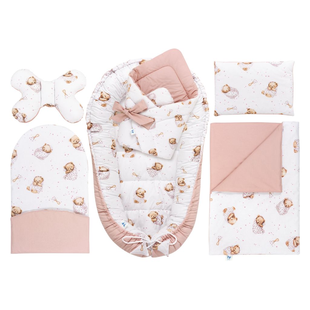 Sada 6 prvků byla vytvořena s ohledem na pohodlí náročných rodičů a jejich nejmenších dětí. Je to bezpečné a útulné místo, které poskytuje ideální prostředí pro spánek a hraní. Ochrání každé dítě od prvních okamžiků života, nabízející mu útulný prostor podobný tomu v matčině břiše. Sada nejen pomáhá usnout, ale také zajišťuje delší a klidnější spánek. Je to ideální řešení plné funkcí, které usnadňují péči o novorozence.