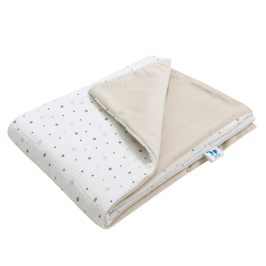 Deka s výplní (55×75 cm): Teplá a měkká deka, vyrobená z prémiového mušelínu, ideální pro zabalení dítěte a zajištění jeho pohodlí.