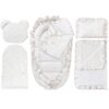 Kokon (95×55 cm): Vybaven vysokými boky (12 cm) pro maximální bezpečnost. Vyroben z prémiového mušelínu, 100% bavlna, vyplněný antialergickým silikonovým vláknem, které je měkké a jemné na dětskou pokožku.
