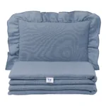 Polštář (25×35 cm): Ideální do postýlky nebo kočárku, vyrobený ze stejného kvalitního mušelínu, vyplněný antialergickým silikonovým vláknem, které zajišťuje klidný a pohodlný spánek.