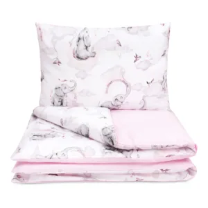 Pohodlná sada bavlněného ložního prádla do školky a nejen tam. Sada obsahuje polštář, přikrývku a vak na ložní prádlo.