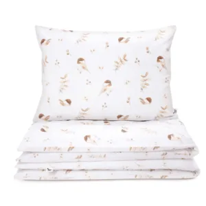 Pohodlná sada bavlněného ložního prádla do školky a nejen tam. Sada obsahuje polštář, přikrývku a vak na ložní prádlo.