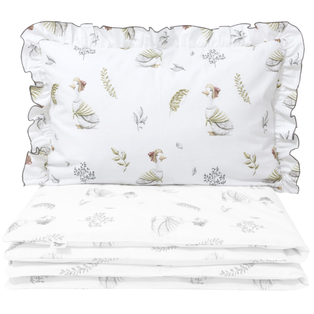 Povlak na polštář do postýlky je ušitý ze 100% bavlny, která má antialergické a antibakteriální vlastnosti. Tkanina nezpůsobuje podráždění, poskytuje teplo, umožňuje pokožce dýchat a zabraňuje jejímu přehřátí. Zapínání na bezpečný skrytý zip usnadňuje používání.