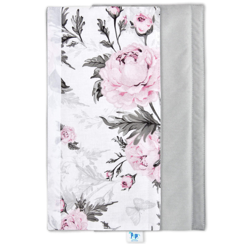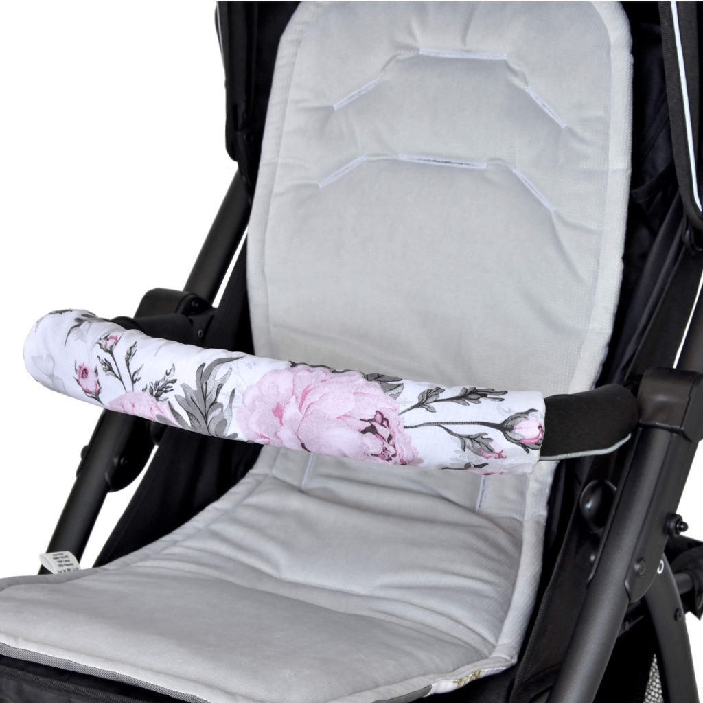 Chránič na madlo kočárku Pink Flowers s velvetem grey