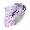Univerzální velikost deky a strategicky rozmístěné otvory na pásy zajišťují, že perfektně padne do většiny autosedaček, sportovních kočárků a nosítek. Pevné zapínání na suchý zip umožňuje snadné nastavení, a barevné lemování na kapuci dodává půvab a stabilitu.