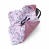 Univerzální velikost deky a strategicky rozmístěné otvory na pásy zajišťují, že perfektně padne do většiny autosedaček, sportovních kočárků a nosítek. Pevné zapínání na suchý zip umožňuje snadné nastavení, a barevné lemování na kapuci dodává půvab a stabilitu.