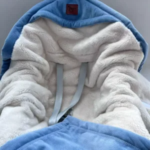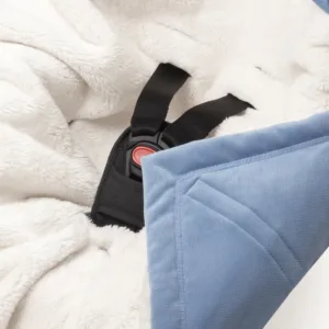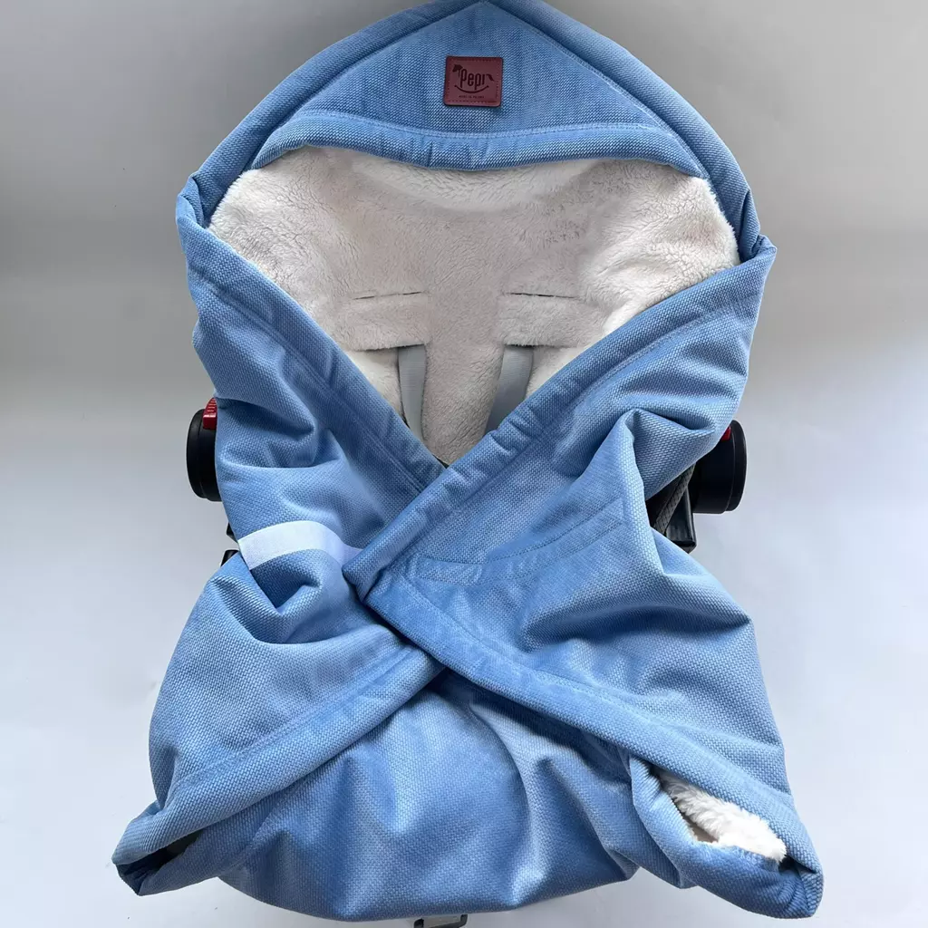 Univerzální velikost deky a strategicky rozmístěné otvory na pásy zajišťují, že perfektně sedí na většinu autosedaček, golfek a nosítek. Spolehlivé zapínání na suchý zip umožňuje snadnou regulaci, zatímco barevný lem na kapuci dodává šarm a zajišťuje stabilitu.