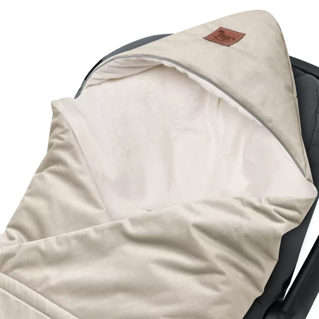 Univerzální velikost kocyk a strategicky umístěné otvory na pásy zajišťují, že se dokonale hodí do většiny autosedaček, golfek a nosítek. Pevné zapínání na suchý zip umožňuje snadnou regulaci a barevné lemování na kapuci přidává na kráse i stabilitě.