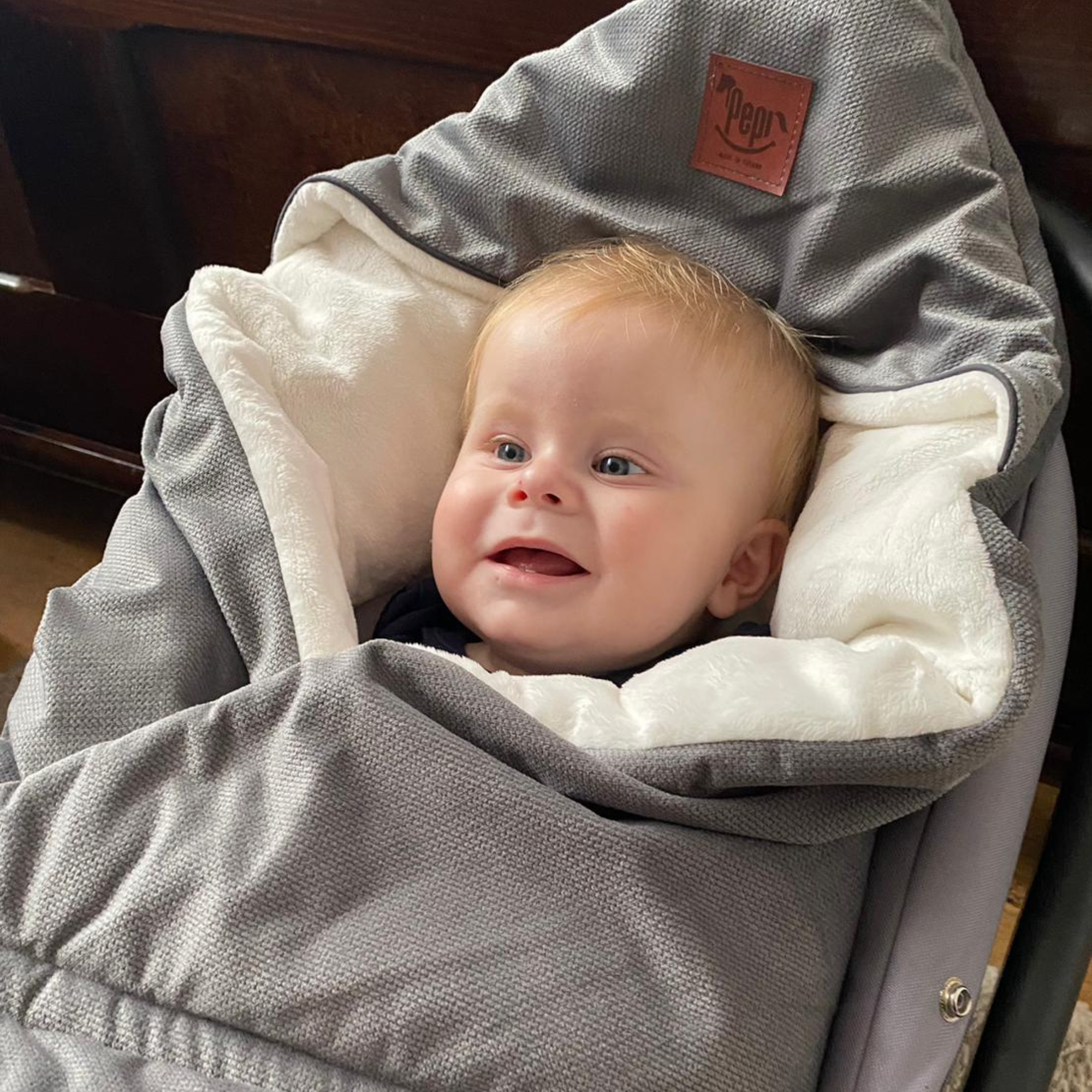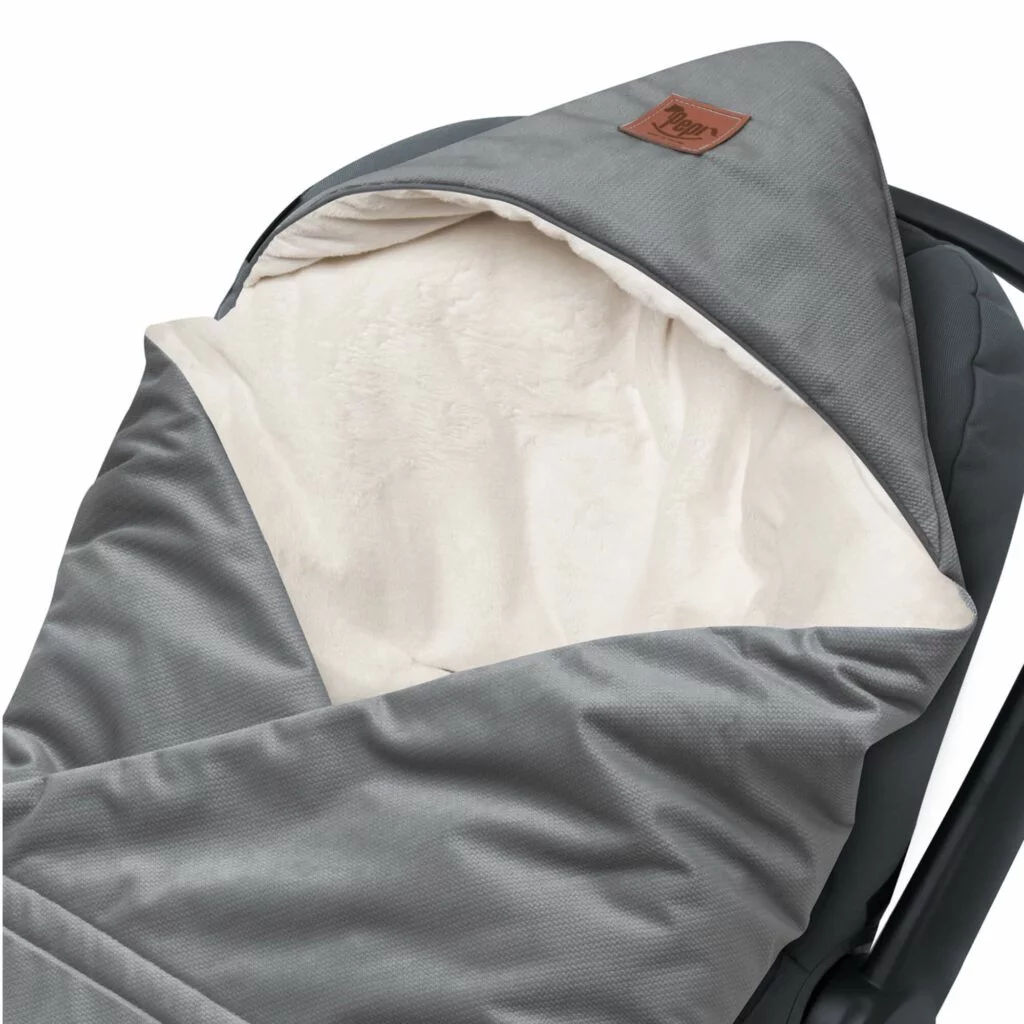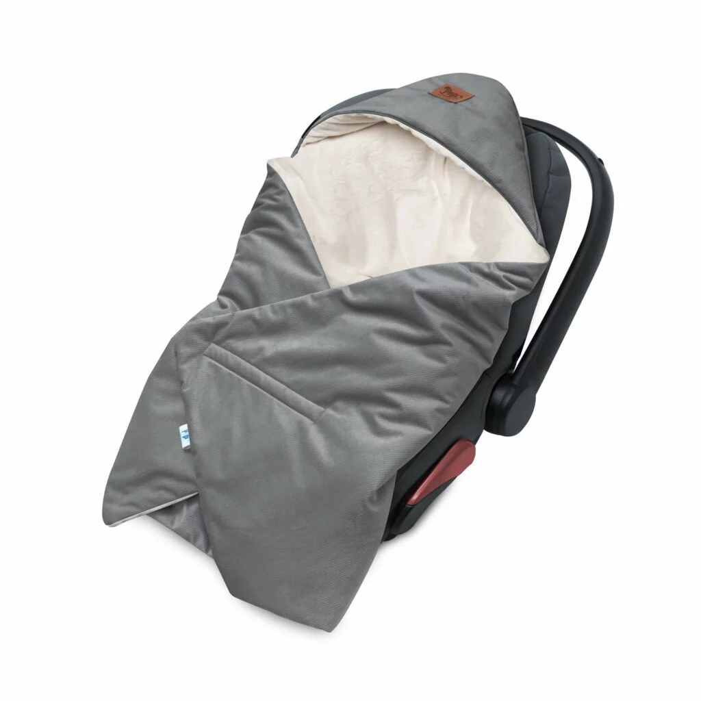 Univerzální velikost kocyk a strategicky umístěné otvory na pásy zajišťují, že se dokonale hodí do většiny autosedaček, golfek a nosítek. Pevné zapínání na suchý zip umožňuje snadnou regulaci a barevné lemování na kapuci přidává na kráse i stabilitě.