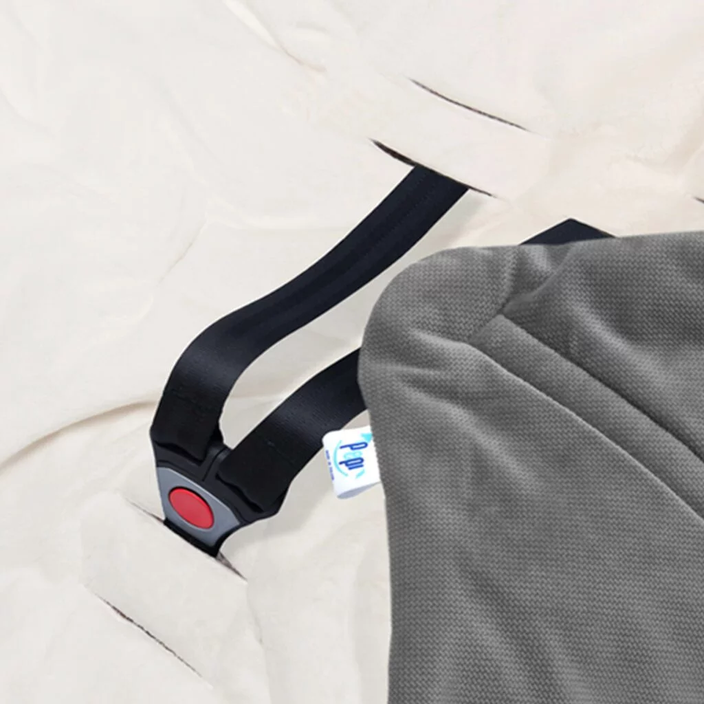 Je vybaven funkčními otvory, které umožňují bezpečné připoutání dítěte jak v tříbodových, tak v pětibodových bezpečnostních pásech. Hypoalergenní výplň ze silikonového vlákna se stará nejen o správnou teplotu, ale také minimalizuje riziko alergií.