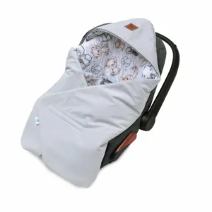 Univerzální velikost deky a strategicky rozmístěné otvory na pásy zajišťují, že perfektně padne do většiny autosedaček, sportovních kočárků a nosítek. Pevné zapínání na suchý zip umožňuje snadné nastavení, a barevné lemování na kapuci dodává půvab a stabilitu.