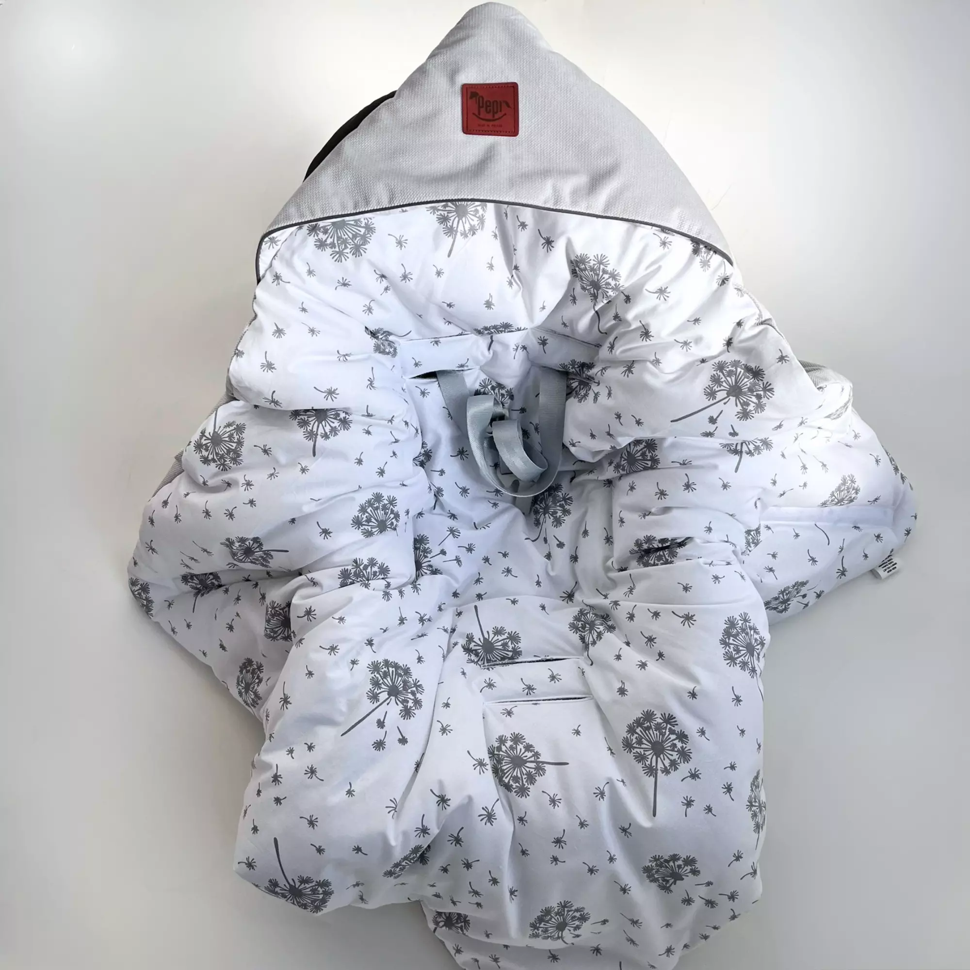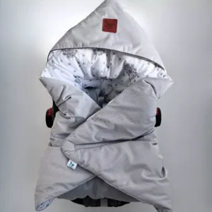 Univerzální velikost deky a strategicky rozmístěné otvory na pásy zajišťují, že perfektně padne do většiny autosedaček, sportovních kočárků a nosítek. Pevné zapínání na suchý zip umožňuje snadné nastavení, a barevné lemování na kapuci dodává půvab a stabilitu.