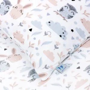 Sada povlečení s antialergickými a antibakteriálními vlastnostmi. Tento materiál zajišťuje teplo a zároveň umožňuje pokožce dítěte volně dýchat, čímž eliminuje riziko přehřátí. Povlak na polštář a povlak na přikrývku jsou vybaveny bezpečnými zipy, které jsou vhodně zakryté, aby zajistily klidný spánek a pohodlí pro nejmenšího uživatele.