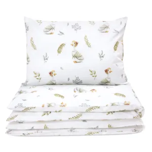 Sada povlečení s antialergickými a antibakteriálními vlastnostmi. Tento materiál zajišťuje teplo a zároveň umožňuje pokožce dítěte volně dýchat, čímž eliminuje riziko přehřátí. Povlak na polštář a povlak na přikrývku jsou vybaveny bezpečnými zipy, které jsou vhodně zakryté, aby zajistily klidný spánek a pohodlí pro nejmenšího uživatele.