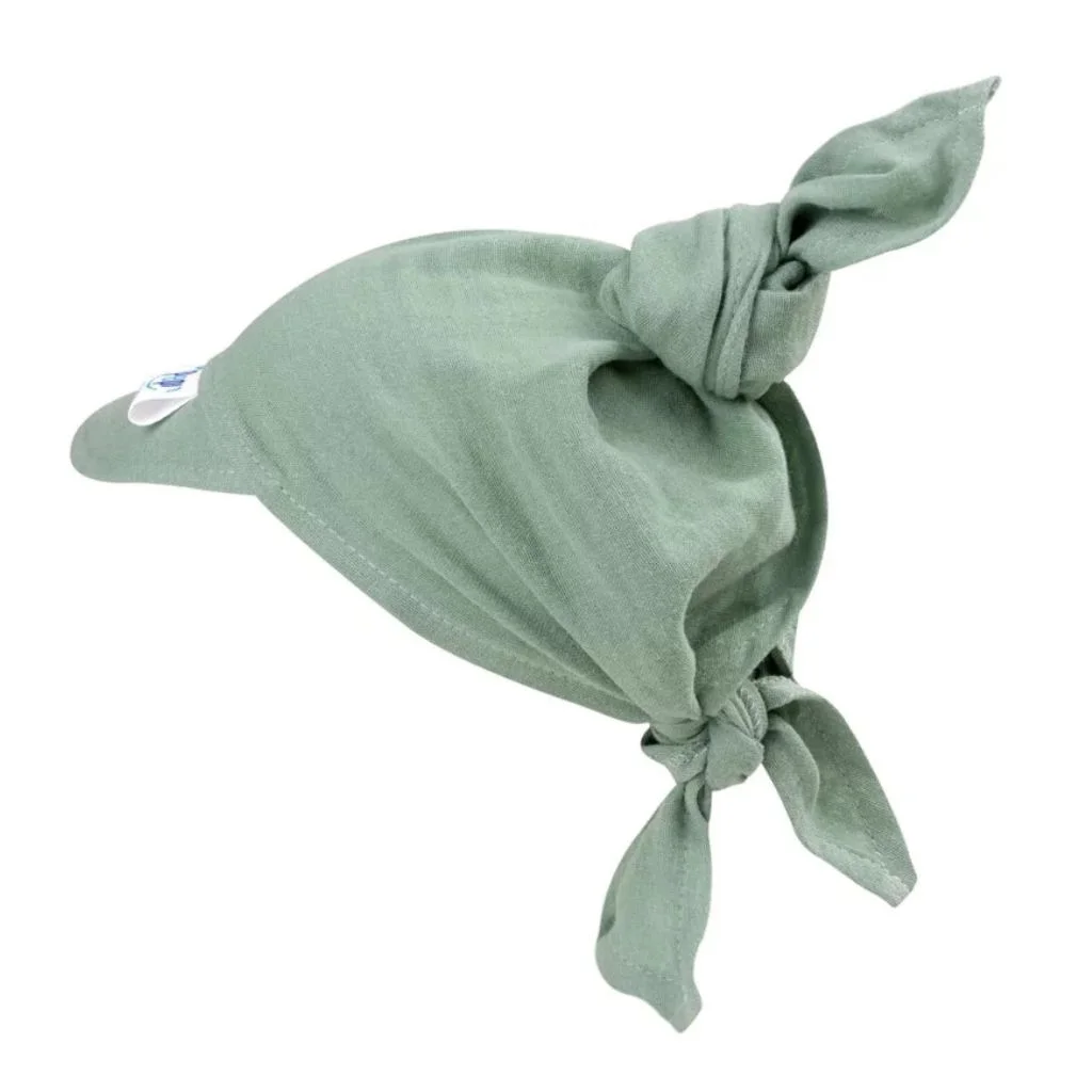 Dětský mušelínový šátek s kšiltem PREMIUM M green