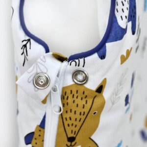 S ohledem na bezpečnost je horní část zipu zabezpečena, aby se zabránilo odření jemné pokožky dítěte. Zip je navíc vybaven speciálním pojistným uzávěrem, který chrání před náhodným rozepnutím spacího pytle.