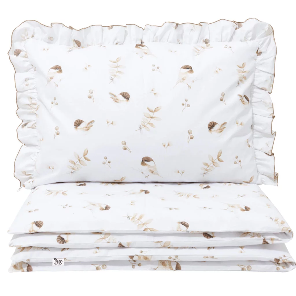 Komplet povlečení do postýlky je vyroben z nejkvalitnější 100% bavlny, která se vyznačuje antialergickými a antibakteriálními vlastnostmi. Tento materiál je jemný k pokožce, zajišťuje teplo a umožňuje volnou cirkulaci vzduchu, čímž zabraňuje přehřátí. Jak povlak na polštář, tak povlak na peřinu jsou vybaveny bezpečnými skrytými zipy.