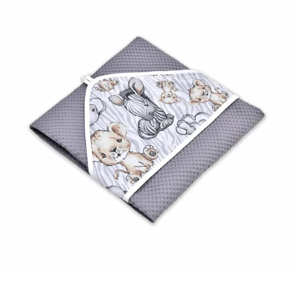 Kapuce a měkká přírodní tkanina s výjimečnou strukturou vafle zajistí, že obyčejný župan se stane také praktickým zavinovačem.