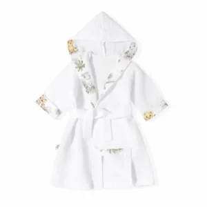 Kapuce a měkká přírodní tkanina s výjimečnou strukturou vafle způsobí, že obyčejný župan se stane také praktickým obalem.