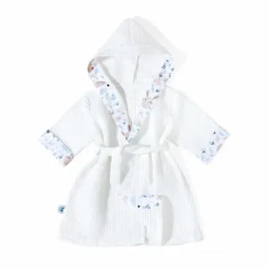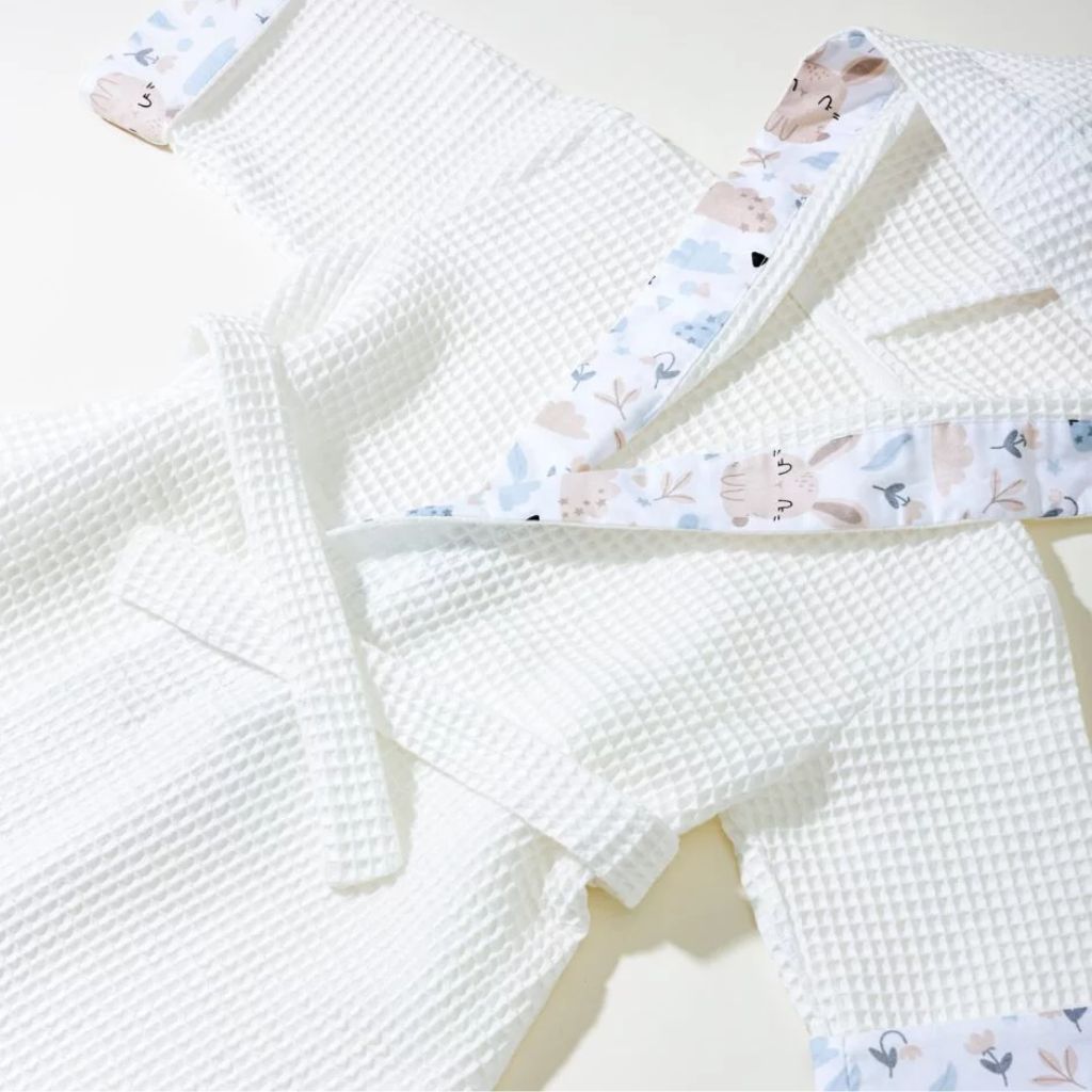 Kapuce a měkká přírodní tkanina s výjimečnou strukturou vafle způsobí, že obyčejný župan se stane také praktickým obalem.