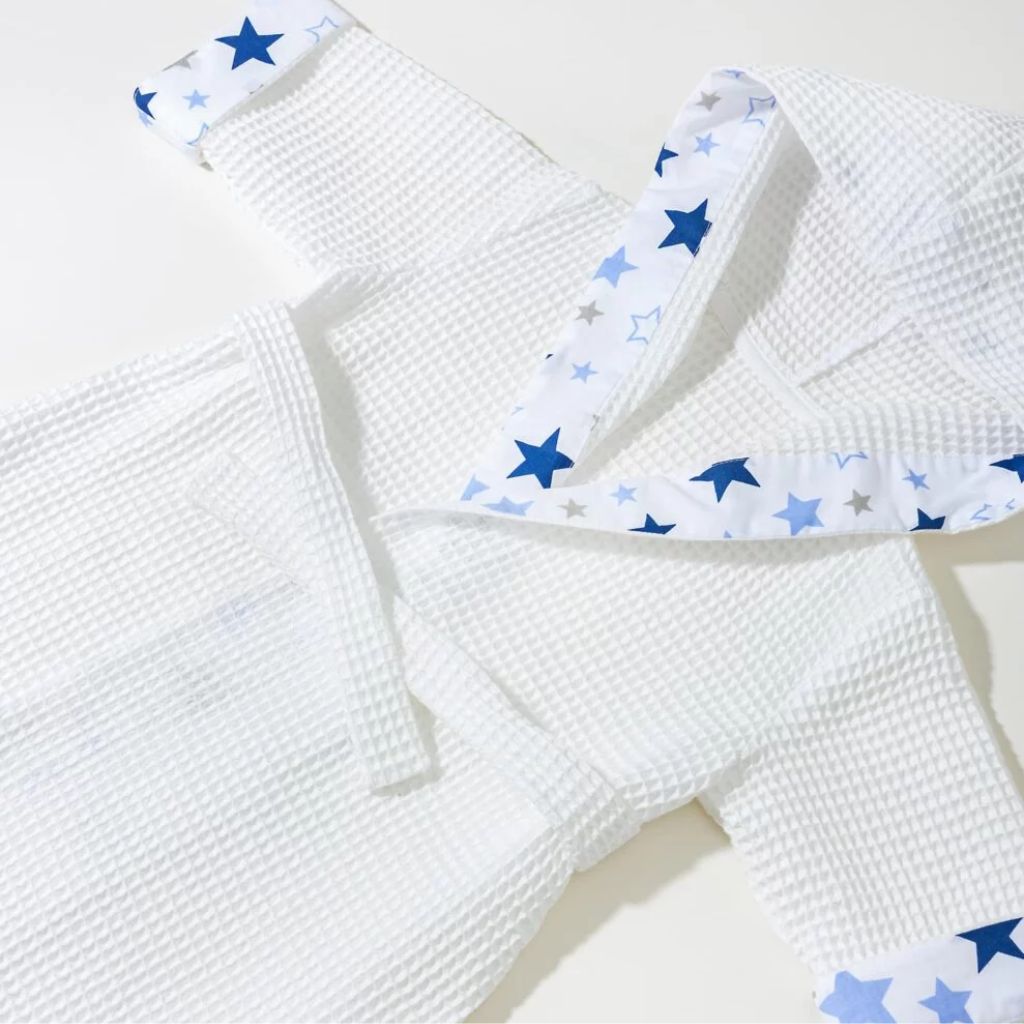 Kapuce a měkká přírodní tkanina s výjimečnou strukturou vafle způsobí, že obyčejný župan se stane také praktickým obalem.