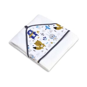 Kapuce a měkká přírodní tkanina s výjimečnou strukturou vafle zajistí, že obyčejný župan se stane také praktickým zavinovačem.