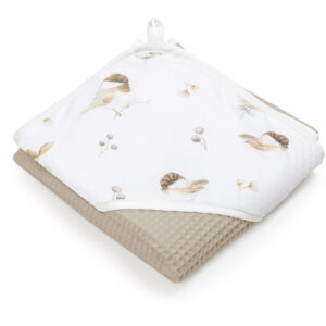 Kapuce a měkká přírodní tkanina s výjimečnou strukturou vafle zajistí, že obyčejný župan se stane také praktickým zavinovačem.