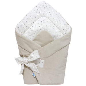 Zavinovačka se snadno přizpůsobí velikosti dítěte pomocí šňůrek, což zaručuje regulaci stupně zavinutí. Toto bezpečné a pohodlné zapínání eliminuje tvrdou sponu nebo suchý zip, které by mohly podráždit jemnou pokožku dítěte. Navíc zavinovačka usnadňuje krmení a nošení miminka, a po rozepnutí může sloužit jako dečka nebo hrací podložka.