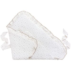 Mušelínový zavinovač Pepi je opatřen šňůrkou, která umožňuje snadné přizpůsobení velikosti dítěte a regulaci míry zavinutí. Tento způsob zapínání je bezpečný a pohodlný, bez použití tvrdých prvků, což zajišťuje maximální komfort pro dítě. Po zavázání šňůrky se vytvoří krásná mašle, která dodává zavinovači elegantní vzhled.