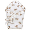 Mušelínový zavinovač Pepi je opatřen šňůrkou, která umožňuje snadné přizpůsobení velikosti dítěte a regulaci míry zavinutí. Tento způsob zapínání je bezpečný a pohodlný, bez použití tvrdých prvků, což zajišťuje maximální komfort pro dítě. Po zavázání šňůrky se vytvoří krásná mašle, která dodává zavinovači elegantní vzhled.