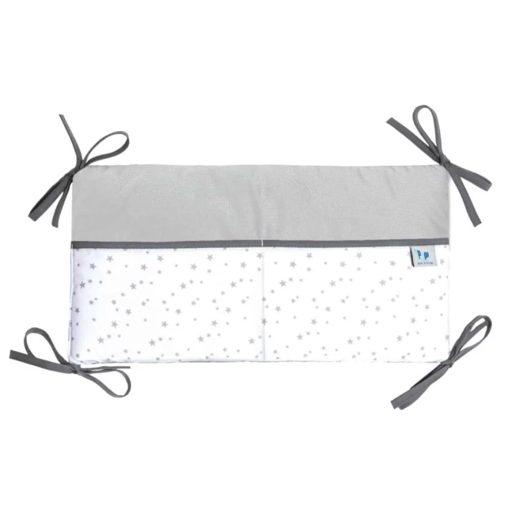 Náš organizér je vybaven pěti kapsami, které jsou navíc zesíleny ozdobnou lemovkou. Má také dostatečně dlouhé šňůrky, které umožňují stabilní připevnění k postýlce. Výplň tvoří měkké, antialergické vlákno a je vyroben z nejkvalitnější bavlny.
