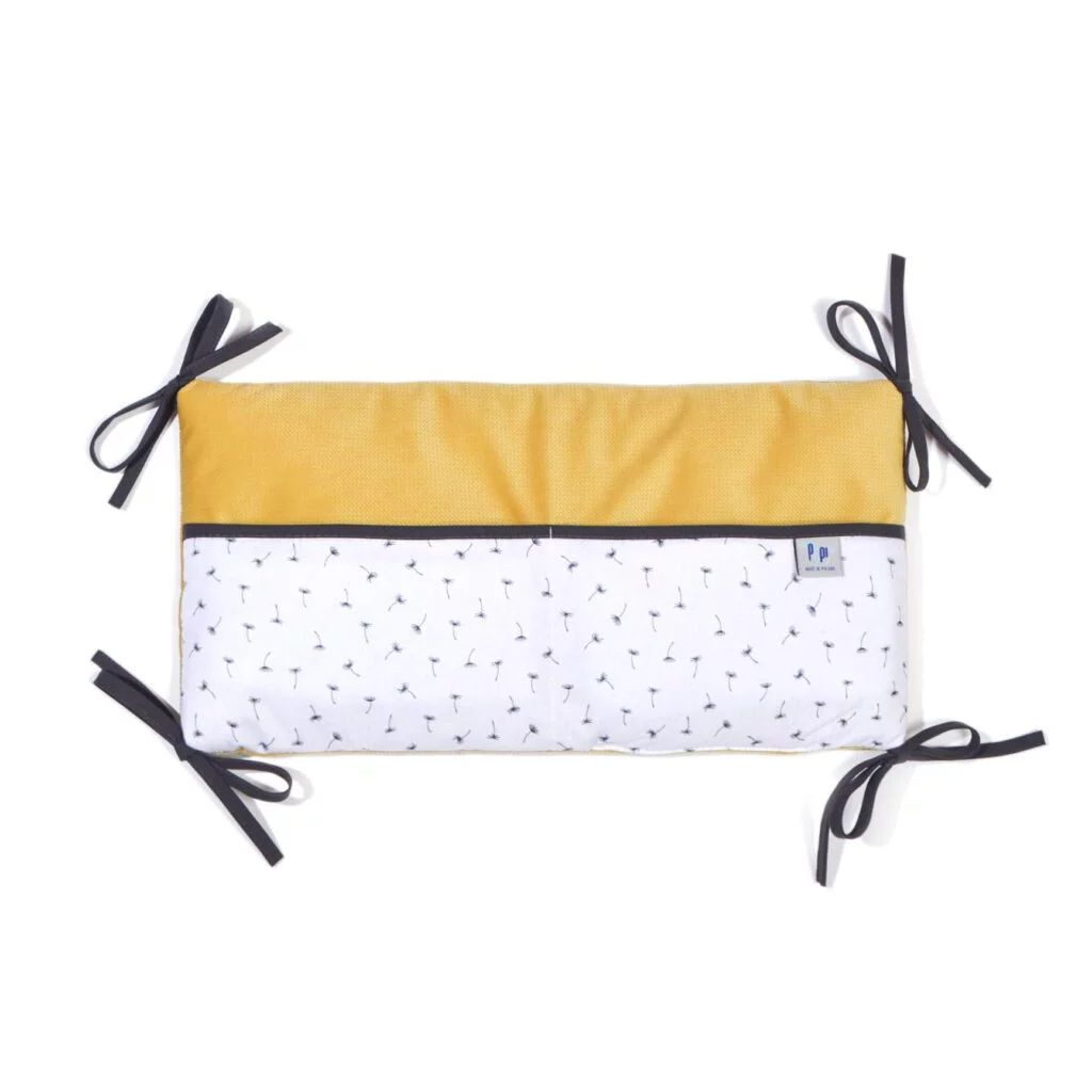 Náš organizér je vybaven pěti kapsami, které jsou navíc zesíleny ozdobnou lemovkou. Má také dostatečně dlouhé šňůrky, které umožňují stabilní připevnění k postýlce. Výplň tvoří měkké, antialergické vlákno a je vyroben z nejkvalitnější bavlny.