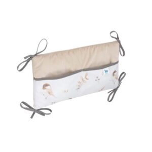 Náš organizér je vybaven pěti kapsami, které jsou navíc zesíleny ozdobnou lemovkou. Má také dostatečně dlouhé šňůrky, které umožňují stabilní připevnění k postýlce. Výplň tvoří měkké, antialergické vlákno a je vyroben z nejkvalitnější bavlny.
