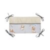 Náš organizér je vybaven pěti kapsami, které jsou navíc zesíleny ozdobnou lemovkou. Má také dostatečně dlouhé šňůrky, které umožňují stabilní připevnění k postýlce. Výplň tvoří měkké, antialergické vlákno a je vyroben z nejkvalitnější bavlny.