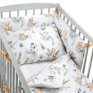 Náš organizér je vybaven pěti kapsami, které jsou navíc zesíleny ozdobnou lemovkou. Má také dostatečně dlouhé šňůrky, které umožňují stabilní připevnění k postýlce. Výplň tvoří měkké, antialergické vlákno a je vyroben z nejkvalitnější bavlny.