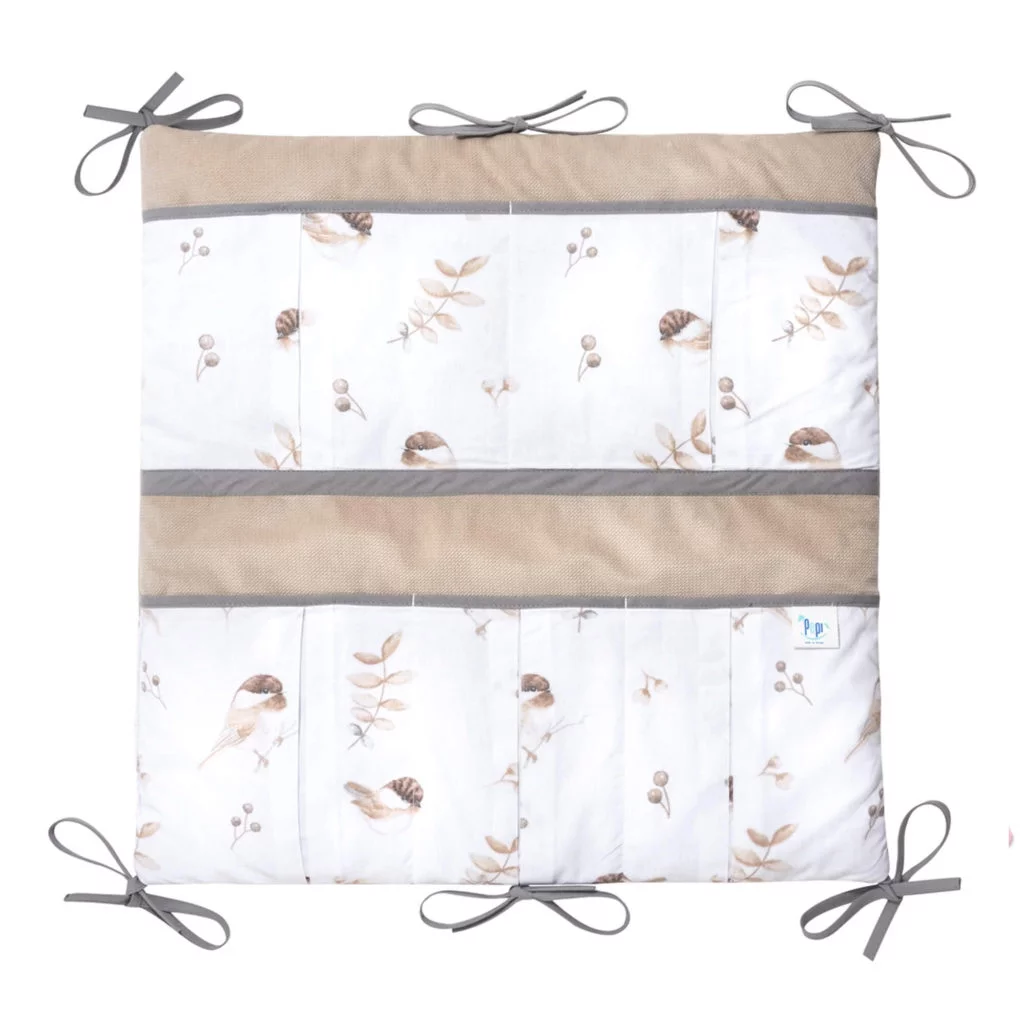 Náš organizér je vybaven pěti kapsami, které jsou navíc zesíleny ozdobnou lemovkou. Má také dostatečně dlouhé šňůrky, které umožňují stabilní připevnění k postýlce. Výplň tvoří měkké, antialergické vlákno a je vyroben z nejkvalitnější bavlny.