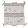 Náš organizér je vybaven pěti kapsami, které jsou navíc zesíleny ozdobnou lemovkou. Má také dostatečně dlouhé šňůrky, které umožňují stabilní připevnění k postýlce. Výplň tvoří měkké, antialergické vlákno a je vyroben z nejkvalitnější bavlny.
