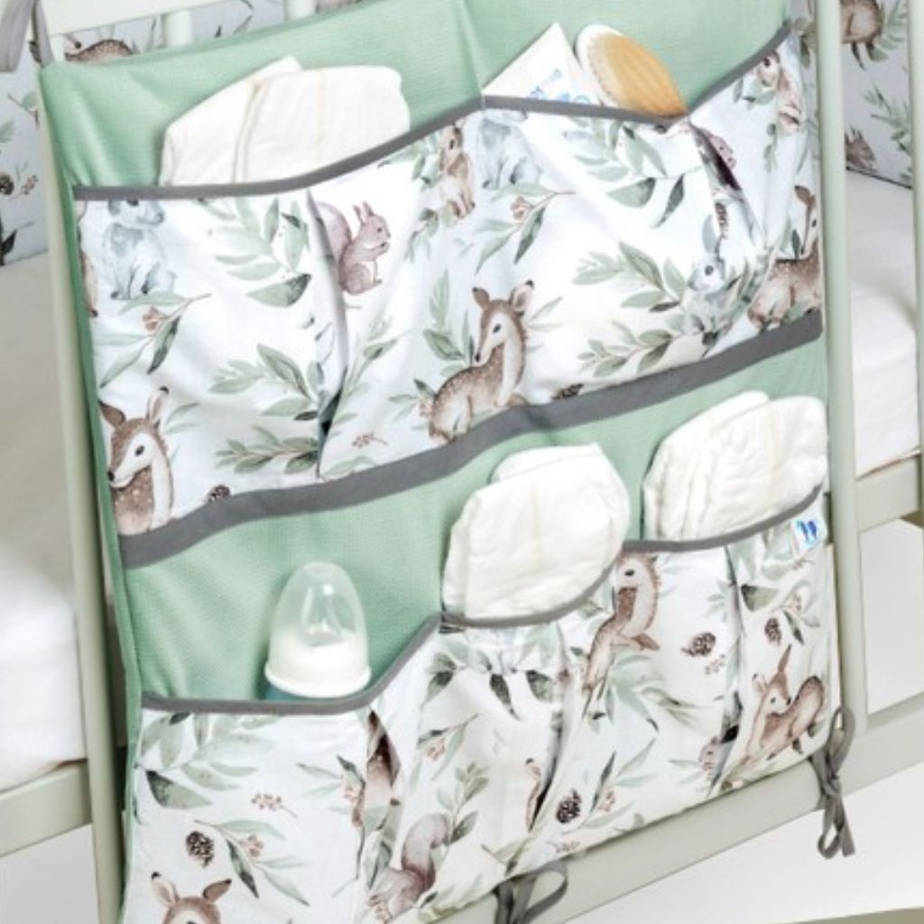 Náš organizér je vybaven pěti kapsami, které jsou navíc zesíleny ozdobnou lemovkou. Má také dostatečně dlouhé šňůrky, které umožňují stabilní připevnění k postýlce. Výplň tvoří měkké, antialergické vlákno a je vyroben z nejkvalitnější bavlny.