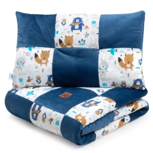 Vyrobena z jemné bavlny a měkkého velvetu, deka s polštářem poskytuje dítěti maximální pohodlí. Výplň z antialergických vláken je bezpečná pro citlivou pokožku dítěte. Náš set se postará o optimální regulaci teploty, což z něj činí ideální volbu po celý rok – jak pro teplejší, tak chladnější noci.